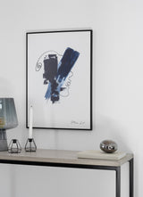 Mia Livs schöner Print FACE stellt eine Figur dar, die in Gedanken versunken ist, die Augen geschlossen hat und einen Moment der Ruhe genießt. Die Kombination aus Abstraktem und Performantem macht das Gesicht zu einem interessanten Blickfang mit einer beruhigenden tiefblauen Farbgebung. FACE ist wunderschöne Kunst aus Finnland für Dein Interieur.