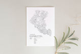Reduziert, einfach und klar ist die Poster Karte in der Gestaltung. Fast minimalistisch gezeichnet stellt sie deine Lieblingsstadt dar. Möglichst filigran sind die Karten als Poster gestaltet.
