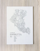 Städtekarte von Hamburg Eismbüttel als wunderschöne Illustration, gedruckt auf hochwertigem Premium-Papier. Verfügbar in verschiedenen Größen.