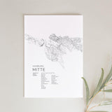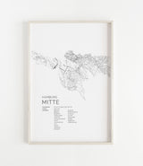 Städtekarte von Hamburg Mitte als wunderschöne Illustration, gedruckt auf hochwertigem Premium-Papier. Verfügbar in verschiedenen Größen.