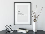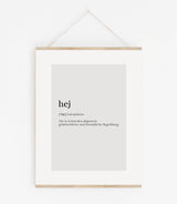 Typo-Print HEJ als wunderschöne Illustration im skandinavischen Stil minimalistisch gestaltet. Eine schöne Geschenkidee für einen lieben Menschen. Der Print HEJ steht für eine sehr herzliche Begrüßung in Schweden.