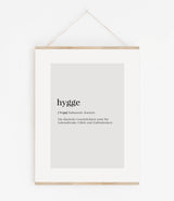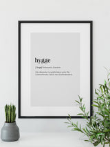 Typo-Print HYGGE als wunderschöne Illustration im skandinavischen Stil minimalistisch gestaltet. Eine schöne Geschenkidee für einen lieben Menschen. Die dänische Gemütlichkeit HYGGE steht für Lebensfreude, Glück und Zufriedenheit.