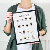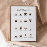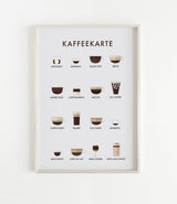 Kaffee Poster Print als wunderschöne Illustration im skandinavischen Stil, gedruckt auf hochwertigem Premium-Papier. Ein traumhaft schönes Geschenk. Verfügbar in verschiedenen Größen und auf Wunsch fertig gerahmt.