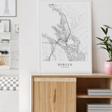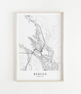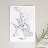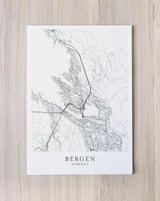 Städtekarte von Bergen als wunderschöne Illustration, gedruckt auf hochwertigem Premium-Papier. Verfügbar in verschiedenen Größen.