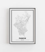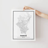 Städtekarte von Berlin Pankow als wunderschöne Illustration, gedruckt auf hochwertigem Premium-Papier. Verfügbar in verschiedenen Größen.