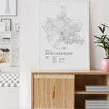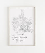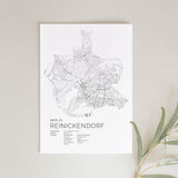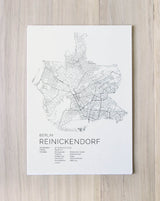 Städtekarte von Berlin Reinickendorf als wunderschöne Illustration, gedruckt auf hochwertigem Premium-Papier. Verfügbar in verschiedenen Größen.