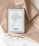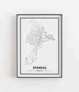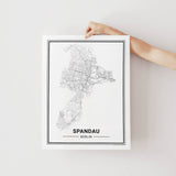 Städtekarte von Berlin Spandau als wunderschöne Illustration, gedruckt auf hochwertigem Premium-Papier. Verfügbar in verschiedenen Größen.