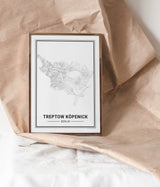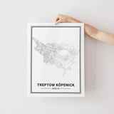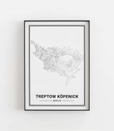 Städtekarte von Berlin Treptow Köpenick als wunderschöne Illustration, gedruckt auf hochwertigem Premium-Papier. Verfügbar in verschiedenen Größen.