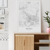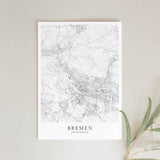 Städtekarte von Bremen als wunderschöne Illustration, gedruckt auf hochwertigem Premium-Papier. Verfügbar in verschiedenen Größen.