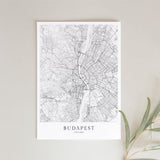 Städtekarte von Budapest als wunderschöne Illustration, gedruckt auf hochwertigem Premium-Papier. Verfügbar in verschiedenen Größen.