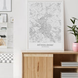 Städtekarte von Düsseldorf als wunderschöne Illustration, gedruckt auf hochwertigem Premium-Papier. Verfügbar in verschiedenen Größen.