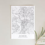 Städtekarte von Duisburg als wunderschöne Illustration, gedruckt auf hochwertigem Premium-Papier. Verfügbar in verschiedenen Größen.