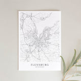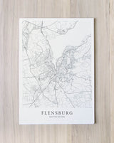 Städtekarte von Flensburg als wunderschöne Illustration, gedruckt auf hochwertigem Premium-Papier. Verfügbar in verschiedenen Größen.