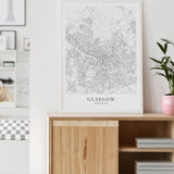 Städtekarte von Glasgow als wunderschöne Illustration, gedruckt auf hochwertigem Premium-Papier. Verfügbar in verschiedenen Größen.