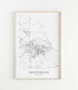 Städtekarte von Greifswald als wunderschöne Illustration, gedruckt auf hochwertigem Premium-Papier. Verfügbar in verschiedenen Größen.
