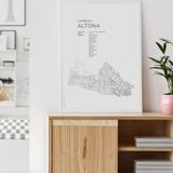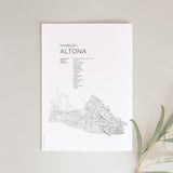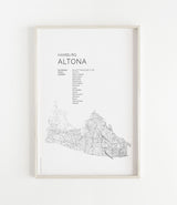 Städtekarte von Hamburg Altona als wunderschöne Illustration, gedruckt auf hochwertigem Premium-Papier. Verfügbar in verschiedenen Größen.