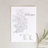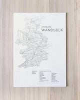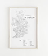 Städtekarte von Hamburg Wandsbek als wunderschöne Illustration, gedruckt auf hochwertigem Premium-Papier. Verfügbar in verschiedenen Größen.