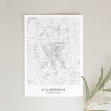Städtekarte von Hildesheim als wunderschöne Illustration, gedruckt auf hochwertigem Premium-Papier. Verfügbar in verschiedenen Größen.