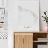 Städtekarte von Koserow als wunderschöne Illustration, gedruckt auf hochwertigem Premium-Papier. Verfügbar in verschiedenen Größen.