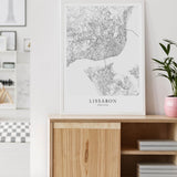 Städtekarte von Lissabon als wunderschöne Illustration, gedruckt auf hochwertigem Premium-Papier. Verfügbar in verschiedenen Größen.