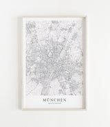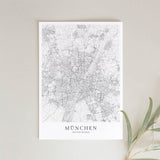 Städtekarte von München als wunderschöne Illustration, gedruckt auf hochwertigem Premium-Papier. Verfügbar in verschiedenen Größen.