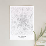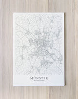 Städtekarte von Münster als wunderschöne Illustration, gedruckt auf hochwertigem Premium-Papier. Verfügbar in verschiedenen Größen.