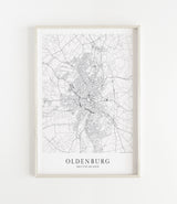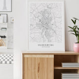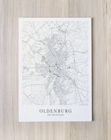 Städtekarte von Oldenburg als wunderschöne Illustration, gedruckt auf hochwertigem Premium-Papier. Verfügbar in verschiedenen Größen.