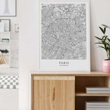 Städtekarte von Paris als wunderschöne Illustration, gedruckt auf hochwertigem Premium-Papier. Verfügbar in verschiedenen Größen.