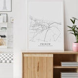 Städtekarte von Prerow als wunderschöne Illustration, gedruckt auf hochwertigem Premium-Papier. Verfügbar in verschiedenen Größen.