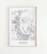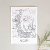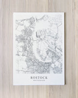 Städtekarte von Rostock als wunderschöne Illustration, gedruckt auf hochwertigem Premium-Papier. Verfügbar in verschiedenen Größen.