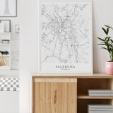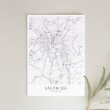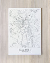 Städtekarte von Salzburg als wunderschöne Illustration, gedruckt auf hochwertigem Premium-Papier. Verfügbar in verschiedenen Größen.