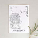 Städtekarte von San Francisco als wunderschöne Illustration, gedruckt auf hochwertigem Premium-Papier. Verfügbar in verschiedenen Größen.