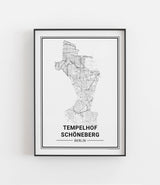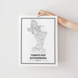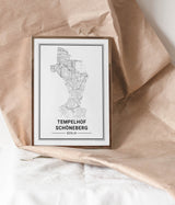 Städtekarte von Berlin Tempelhof Schöneberg als wunderschöne Illustration, gedruckt auf hochwertigem Premium-Papier. Verfügbar in verschiedenen Größen.