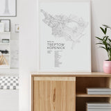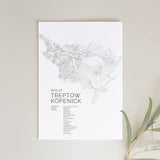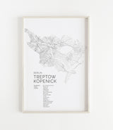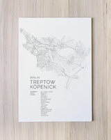 Städtekarte von Berlin Treptow Köpenick als wunderschöne Illustration, gedruckt auf hochwertigem Premium-Papier. Verfügbar in verschiedenen Größen.