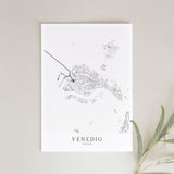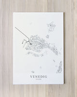 Städtekarte von Venedig (Altstadt) als wunderschöne Illustration, gedruckt auf hochwertigem Premium-Papier. Verfügbar in verschiedenen Größen.