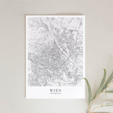 Städtekarte von Wien als wunderschöne Illustration, gedruckt auf hochwertigem Premium-Papier. Verfügbar in verschiedenen Größen.