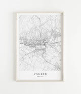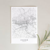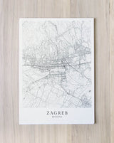 Städtekarte von Zagreb als wunderschöne Illustration, gedruckt auf hochwertigem Premium-Papier. Verfügbar in verschiedenen Größen.