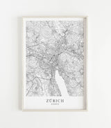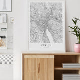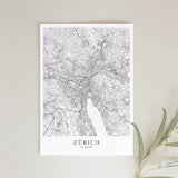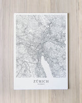 Städtekarte von Zürich als wunderschöne Illustration, gedruckt auf hochwertigem Premium-Papier. Verfügbar in verschiedenen Größen.