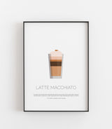 Latte Macchiato Poster Print als wunderschöne Illustration im skandinavischen Stil, gedruckt auf hochwertigem Premium-Papier. Ein traumhaft schönes Geschenk. Verfügbar in verschiedenen Größen und auf Wunsch fertig gerahmt.