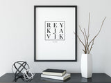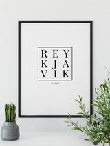Typo-Print REYKJAVIK als wunderschöne Illustration im skandinavischen Stil minimalistisch gestaltet. Eine schöne Geschenkidee für einen lieben Menschen.