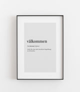 Typo-Print VÄLKOMMEN als wunderschöne Illustration im skandinavischen Stil minimalistisch gestaltet. Eine schöne Geschenkidee für einen lieben Menschen. Der Print VÄLKOMMEN steht für eine sehr herzliche Begrüßung in Schweden.