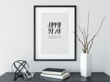 Typo-Print YEAH als wunderschöne Illustration im skandinavischen Stil minimalistisch gestaltet. Eine schöne Geschenkidee für einen lieben Menschen.