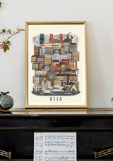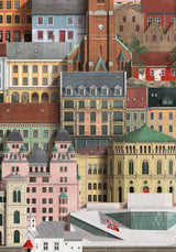 Oslo als wunderschönes Poster für die eigenen vier Wände. Oslo ist die kleinste der drei skandinavischen Hauptstädte, bietet aber dennoch eine große Vielfalt an urbanen Szenen. In einer Straße mag die Stadt mit hohen und modernen Gebäuden sehr großstädtisch erscheinen, während Sie in anderen Straßen alte Holzhäuser finden, als ob Sie in einem kleinen Dorf gewesen wären. Gehen Sie auf Erkundungstour und Sie werden die vielen farbenfrohen Gebäude vom alten Arbeiterviertel Grünerløkka bis zu den modischeren Fassaden in Frogner finden. Und natürlich viele der Wahrzeichen des wunderschönen Oslo.
