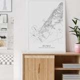 Städtekarte von Dubai als wunderschöne Illustration, gedruckt auf hochwertigem Premium-Papier. Verfügbar in verschiedenen Größen.